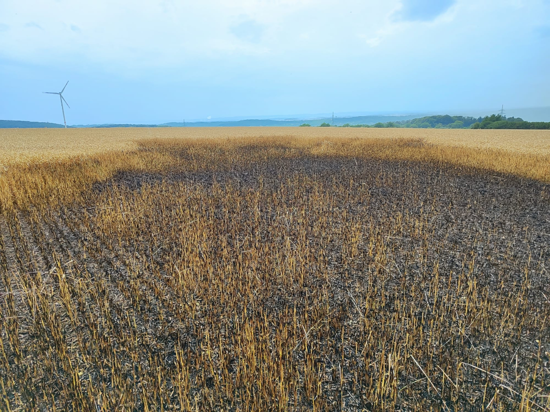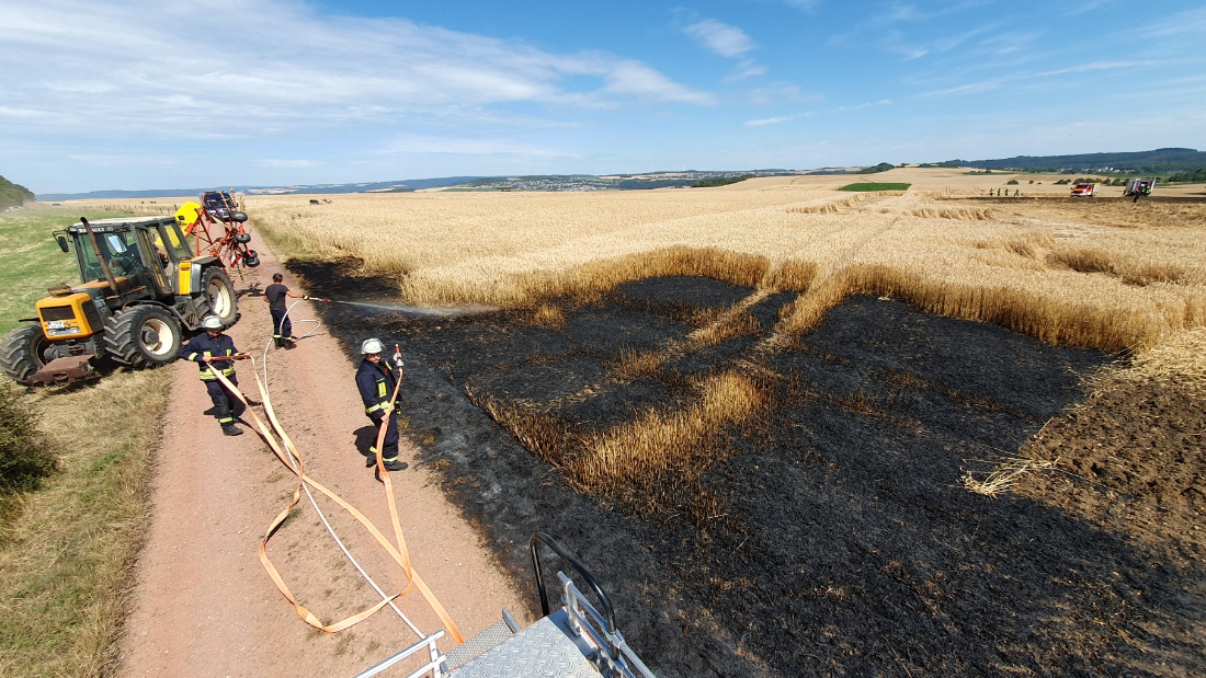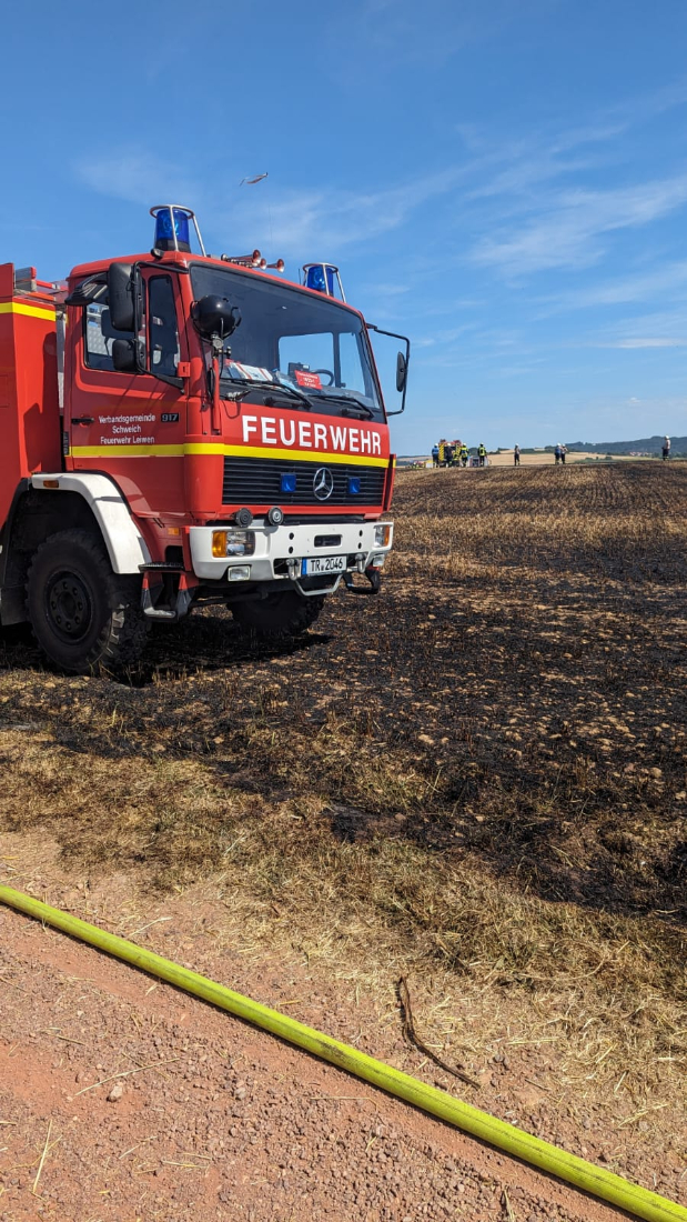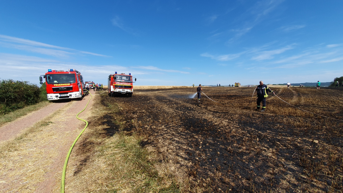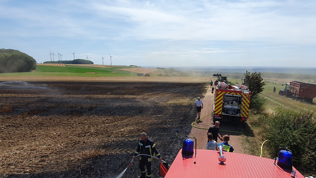 Die anrückenden Einsatzkräfte fanden vor Ort eine brennenden Strohballen auf einem Stoppelstück vor.