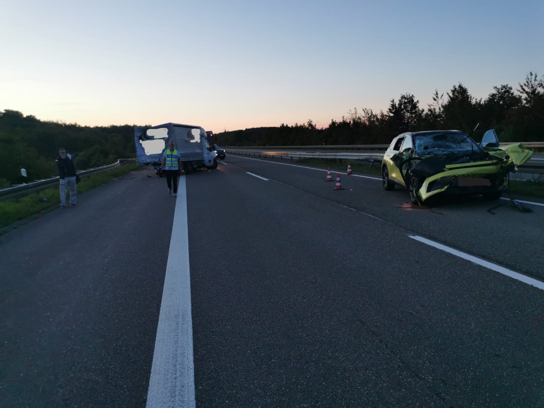 Die Bundesautobahn blieb im Zuge der Löscharbeiten in Fahrtrichtung Merzig durch die Polizei vorübergehend voll gesperrt.